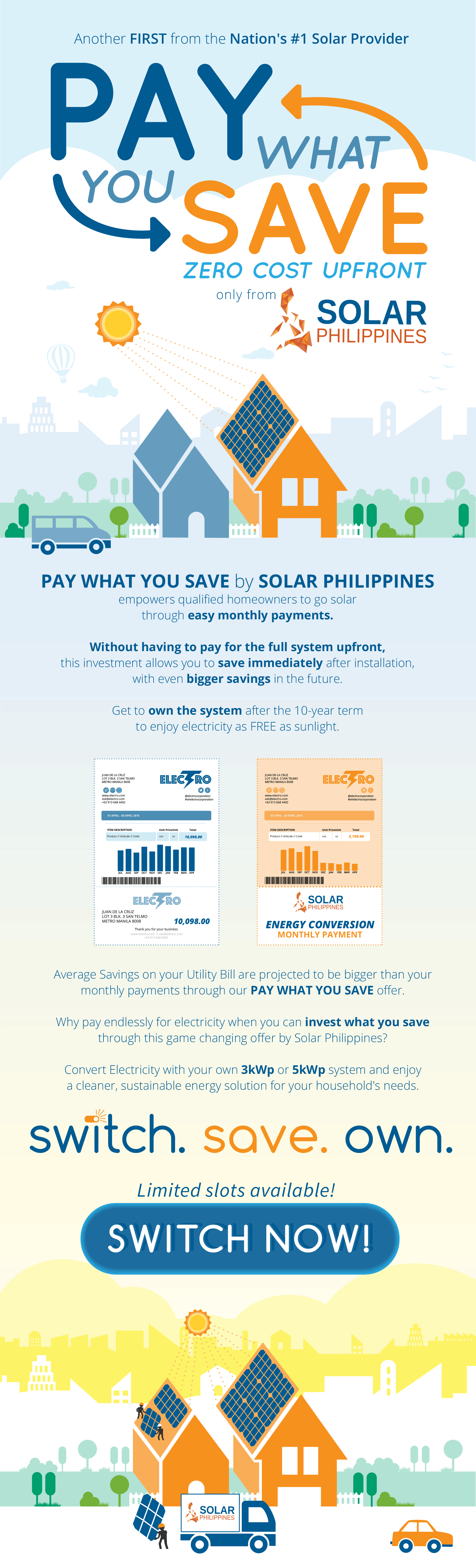 Solar Philippines’ sales initiative, “Pay what you save” is a campaign that needed a logo, graphic design, layout, and conceptualization.