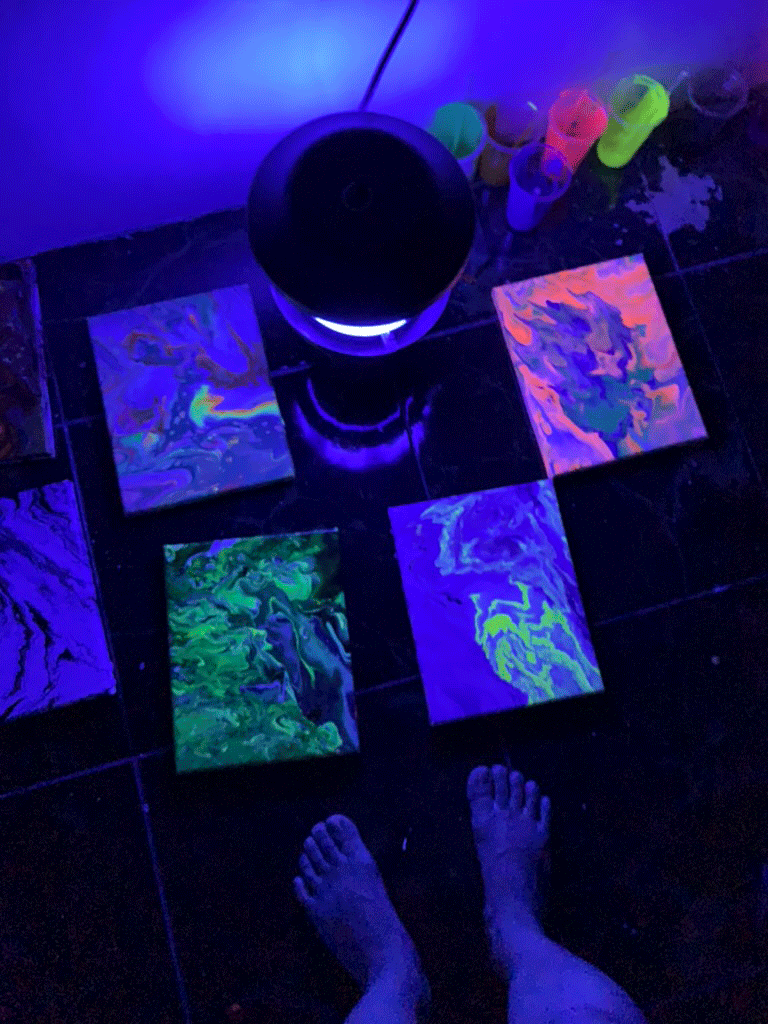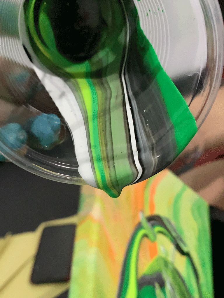 The process, as the title suggests, flowed flawlessly. Color mixing, cleaning, and drying took most of the time, yet letting the paint flow was just quick which demanded a combination of technique, imagination… and hints of neon.